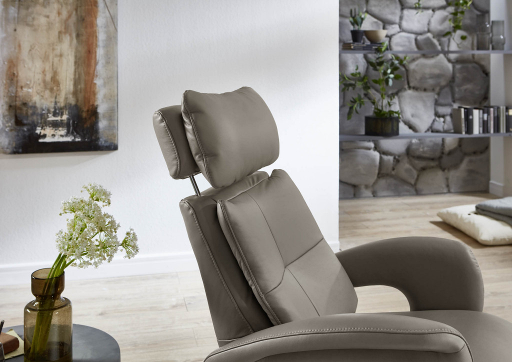 Relaxsessel - Verstellung der Beinauflage durch Körperdruck, stufenlose Verstellung der Rückenlehne durch Gasdruckfeder, individuelle Kopfpolsterverstellung manuell, BHT ca. 75/110/87-175 cm