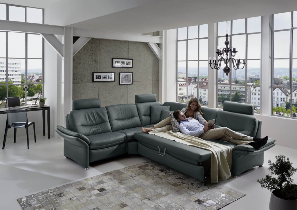Leder Vivre (PG 58), Farbe ocean, Sitz F1 weich, Metallfuß, Sitzhöhe 45cm, Sitztiefe 53cm, bestehend aus: 2,5L - 2,5-Sitzer, Armteil links, BHT ca.172/89/92cm RE - Rundecke, BHT ca.100/89/100cm 2,5R - 2,5-Sitzer, Armteil rechts, BHT ca. 172/89/92cm Stellmaß ca.272x272cm