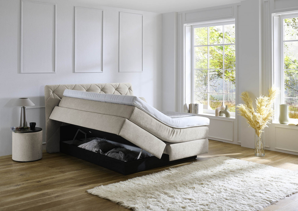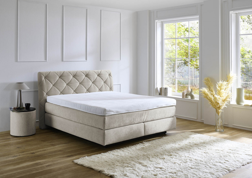 Erleben Sie den bequemen Komfort unseres Boxspringbettes, das Ihren Schlaf in eine Oase der Entspannung verwandelt. Mit einer Auswahl an verschiedenen Unterbauten, Matratzen, Kopfteilen, Füßen und Toppern können Sie Ihr persönliches Traumbett gestalten. Genießen Sie die perfekte Kombination aus stilvoller Eleganz und höchstem Schlafkomfort, die Ihnen jede Nacht erholsamen Schlaf schenkt. Tauchen Sie ein in eine Welt des Wohlbefindens und lassen Sie sich von der Qualität und Vielfalt dieses Bettes begeistern. Ihr individuelles Boxspringbett wartet darauf, Ihr Schlafzimmer in einen Ort der Ruhe und Harmonie zu verwandeln.