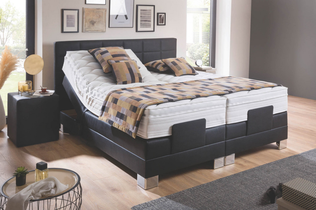 Liegefläche 180x200cm mit UB350G, Stoffgruppe A 1015, Kopfteil 200, Fuß FM07 15 Stahl Eckfuß, inklusive Matratze Silber Top T, Absetzung KT200, 2x 90x200cm H2 und H3