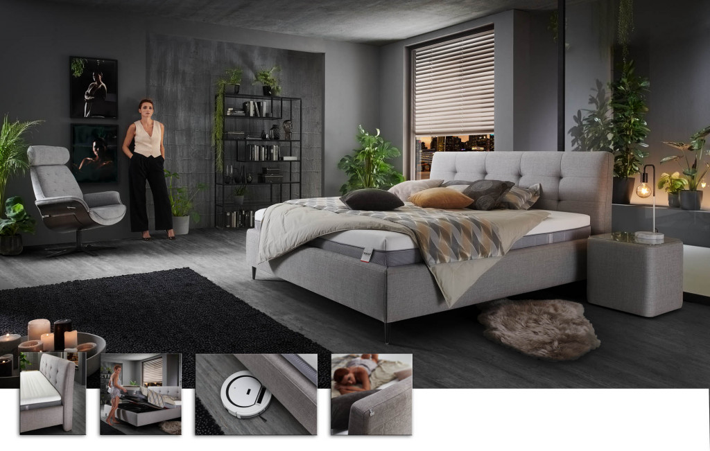 Liegefläche ca. 180x200 cm, Bettmaße BHT ca. 196/122/222cm, Bezug 4331002 Balu silber (PG3), Kopfteil 22941M Höhe 109 cm Rücken unecht, Metallfuß WO14-13/M03 schwarz Höhe 13 cm, zerlegbares Bettgestell mit kubischer Optik KU29 Höhe ca. 29 cm gepolstert, 2x HU-M150 move it - Wendematratze 7-Zonen Taschenfederkern in H2/H3 Gel- und Kaltschaum-Auflage in unterschiedlichen Härtegraden, Höhe ca. 24 cm, 2x LR400KFV - Flexibler Zonen-Rahmen mit 44 flexibel gelagerten Mehrschicht-Federholzleisten Höhe ca. 12 cm,