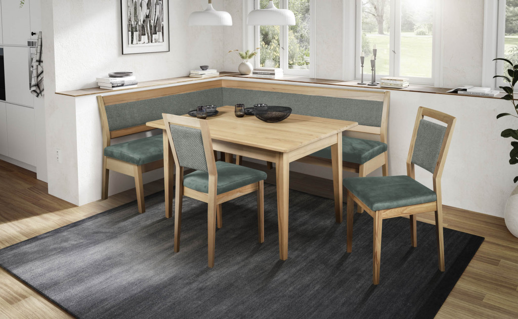 Eckbank, Sitz gepolstert, Lehne Polsterfüllungen, ca. 145x185 cm, Höhe ca. 89 cm