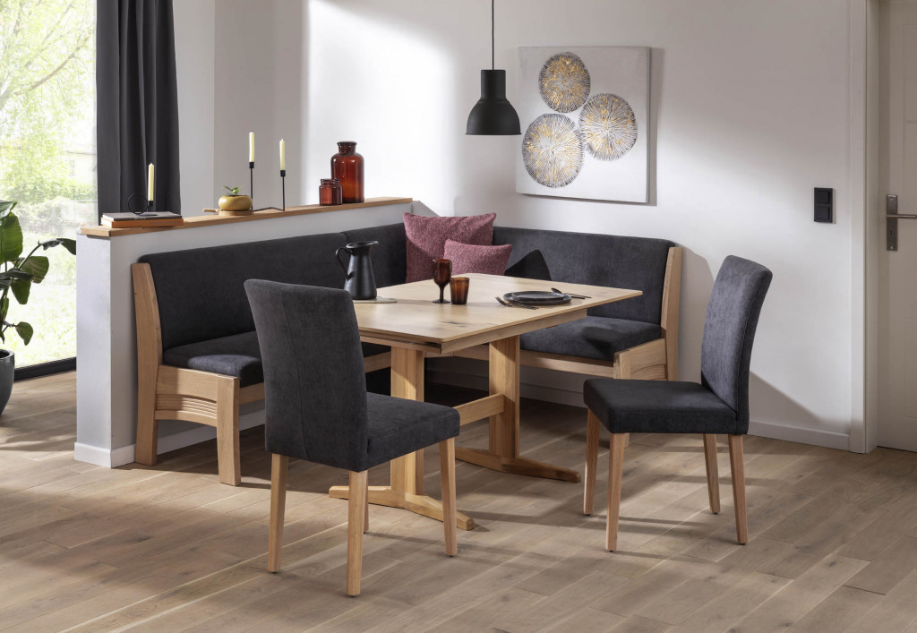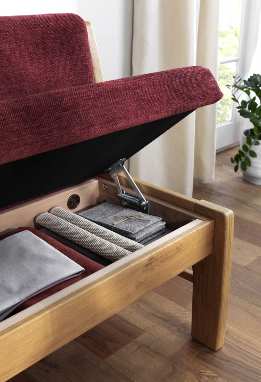 4-teilig, Bezug Stoff, Farbe rot, Naht Zierkappnaht, Rücken geschlossen mit Sichtholzblende Asteiche natur, Holzteile Asteiche natur, Naht Ton in Ton, Rücken echt, Seitenwange B, Sitzhöhe 50 cm, Sitztiefe 47 cm, bestehend aus: