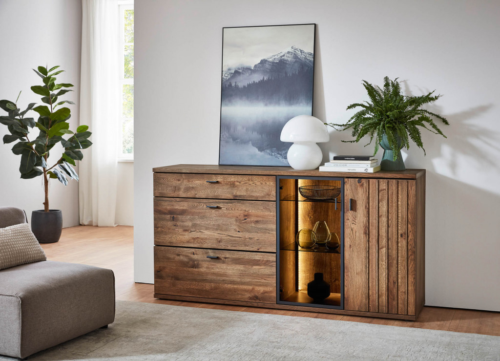 Unterteil, 2 Schubkästen, 2-türig, 1 Glastür, BHT ca. 210,2/70,4/50,2 cm