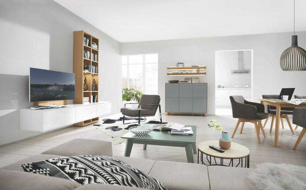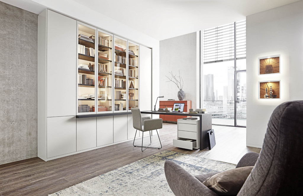 Front Lack Taupe, Innenkorpus Lack Taupe, Korpushülle Eiche graphit, push to open,
