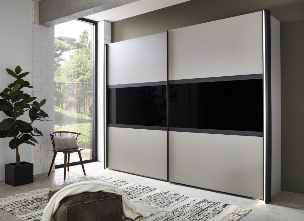 Graphit Dekor, mittig Rahmentüren Graphit Dekor, Mitteltüren in Glas Parsol grau ohne Rauten - Drehtürenschrank, 6-türig, BHT ca. 250/216/58 cm