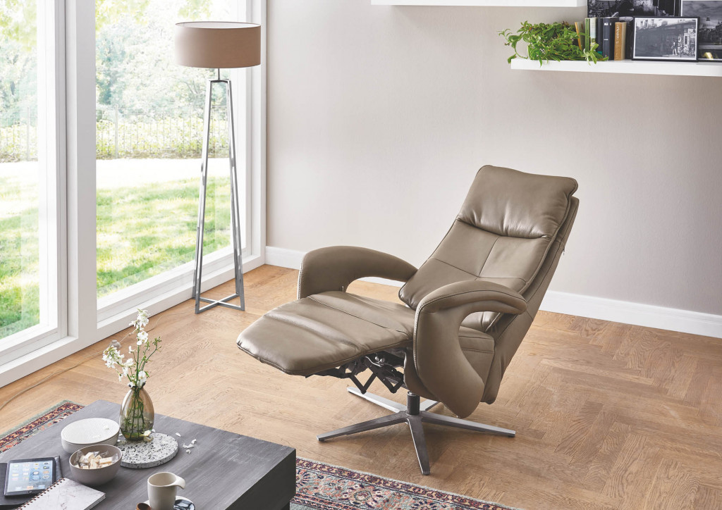 Relaxsessel - Verstellung der Beinauflage durch Körperdruck, stufenlose Verstellung der Rückenlehne durch Gasdruckfeder, individuelle Kopfpolsterverstellung manuell, BHT ca. 75/110/87-175 cm