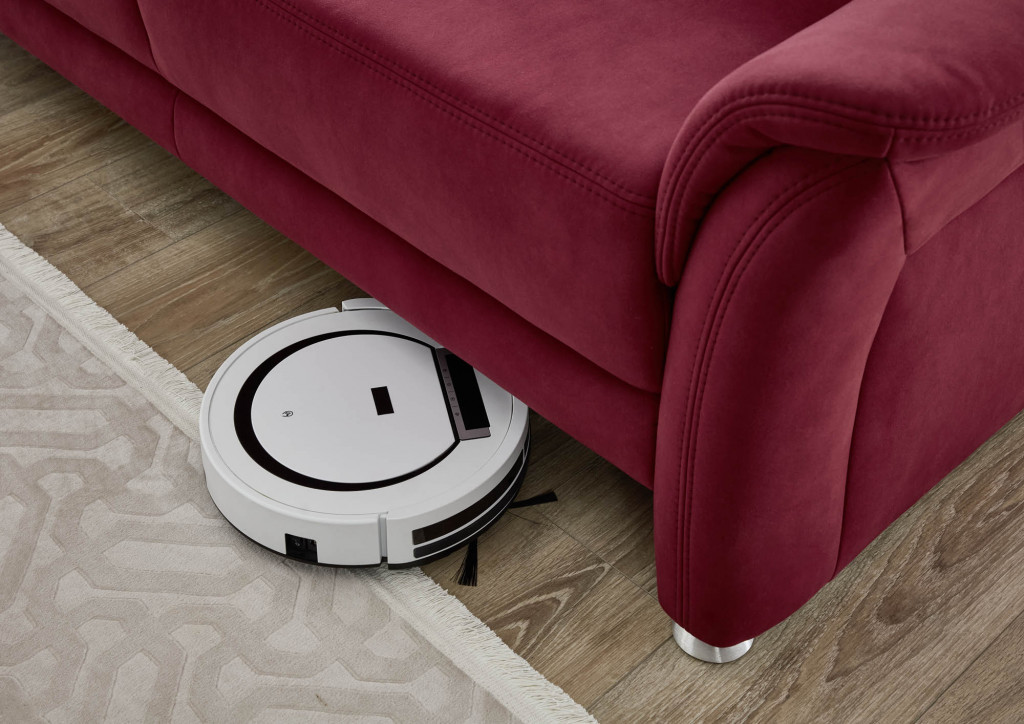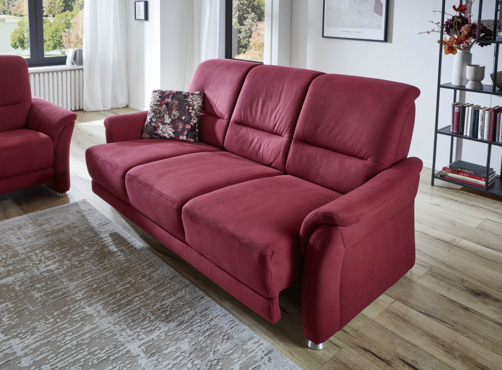 Stoff Feeling, Farbe wine, Rücken Nessel, Sitz Federkern, Doppelsteppnaht ohne Kontrastnaht, Fuß Metall alu gebürstet, Sitzhöhe 46 cm, Sitztiefe 53 cm, bestehend aus: