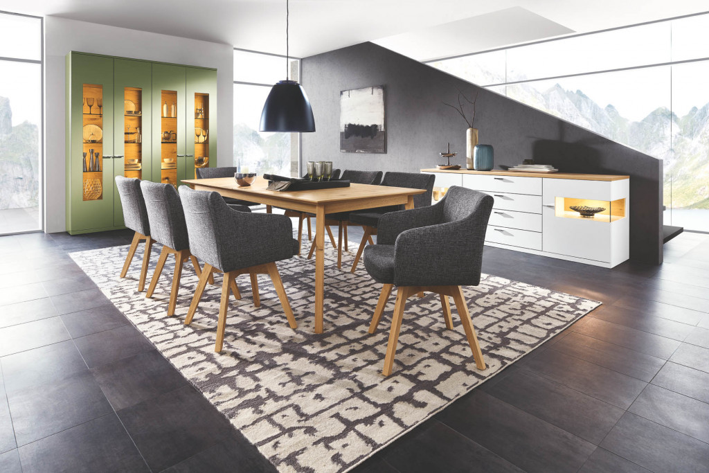 Front/Korpus Lack weiß, Griff Eiche sand, Sockel, bestehend aus: