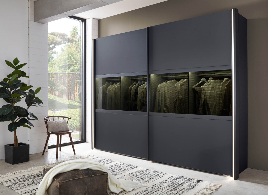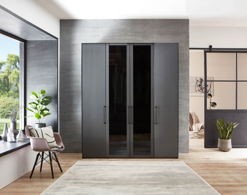 Graphit Dekor, mittig Rahmentüren Graphit Dekor, Mitteltüren in Glas Parsol grau ohne Rauten - Drehtürenschrank, 6-türig, BHT ca. 250/216/58 cm