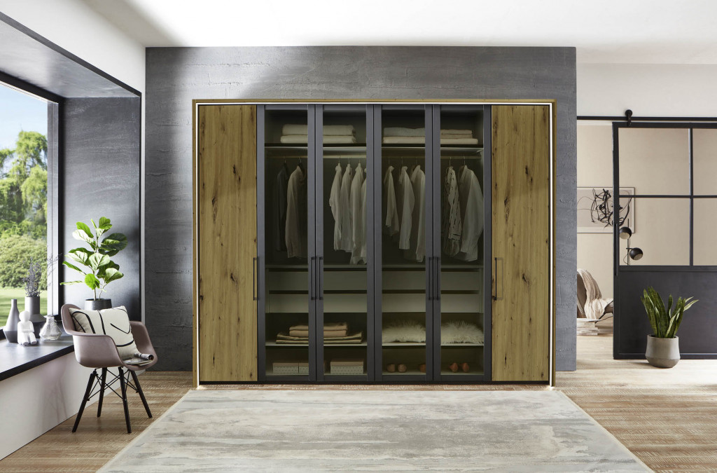 Entdecken Sie unseren hochwertigen Drehtürenschrank, der mit seiner 6-türigen Konstruktion und vielfältigen Anpassungsmöglichkeiten überzeugt. Wählen Sie aus verschiedenen Breiten und Höhen, um den Schrank perfekt an Ihre räumlichen Gegebenheiten anzupassen. Zudem stehen Ihnen diverse Ausführungen zur Verfügung, die sich harmonisch in Ihr Wohnambiente einfügen. Unser umfangreiches Beimöbelprogramm bietet zusätzliche Flexibilität bei der Gestaltung Ihres Schlafzimmers. Optional können Sie einen eleganten Passepartout-Rahmen sowie eine stimmungsvolle Beleuchtung hinzufügen. Für eine optimale Organisation sorgt die optionale Inneneinteilung, die individuell auf Ihre Bedürfnisse abgestimmt werden kann. Dieser Drehtürenschrank vereint Funktionalität und Ästhetik auf höchstem Niveau – eine ideale Lösung für anspruchsvolle Kunden.