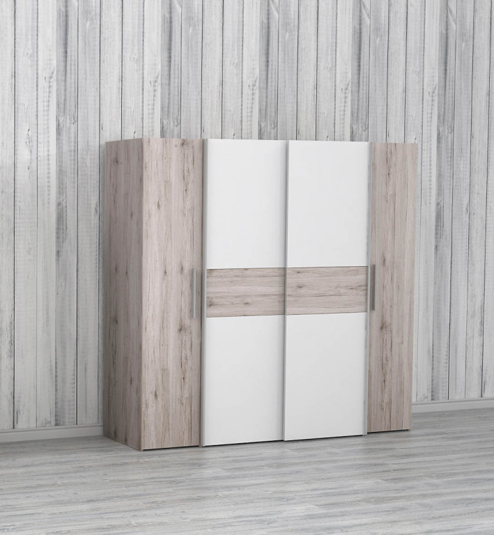 Kleiderschrank 4trg. KLTS62321 in -C754Front Concrete Optik Dark Grey/Old Wood Vintage, Korpus Old Wood Vintage, BHT 200,1x190,5x61,6cm