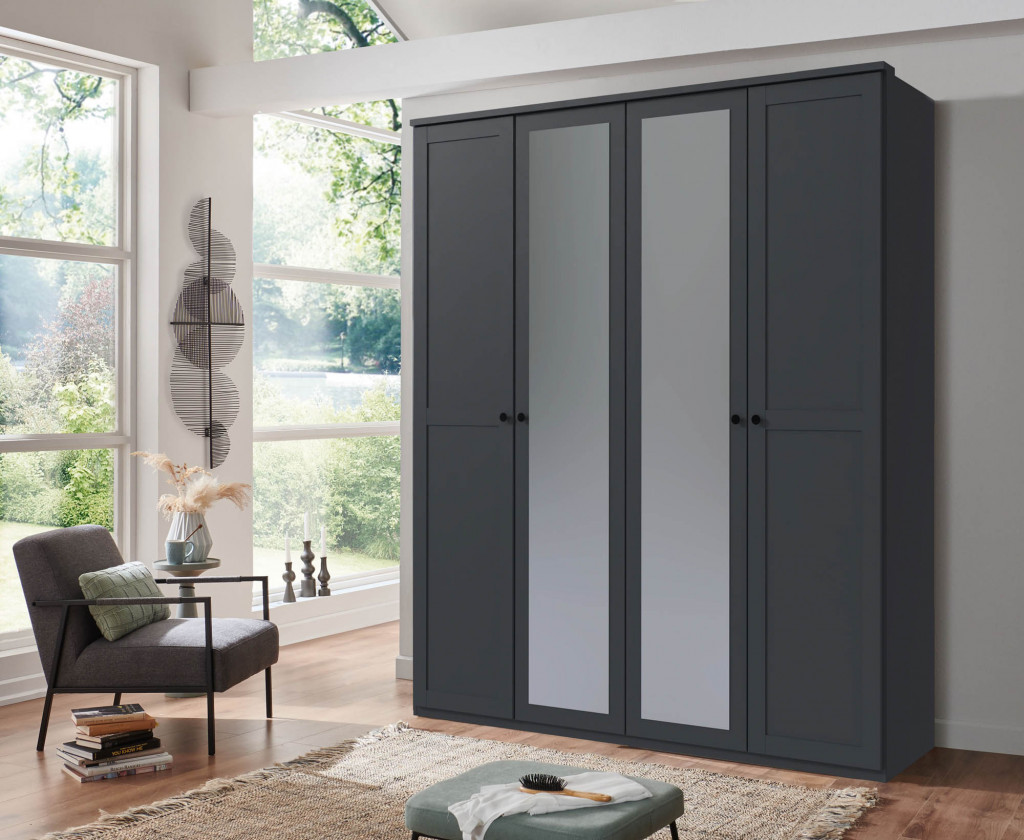 Schwebetürenschrank 2-trg. in Graphit, 1 Spiegeltüre, BHT ca. 225x208x65cm