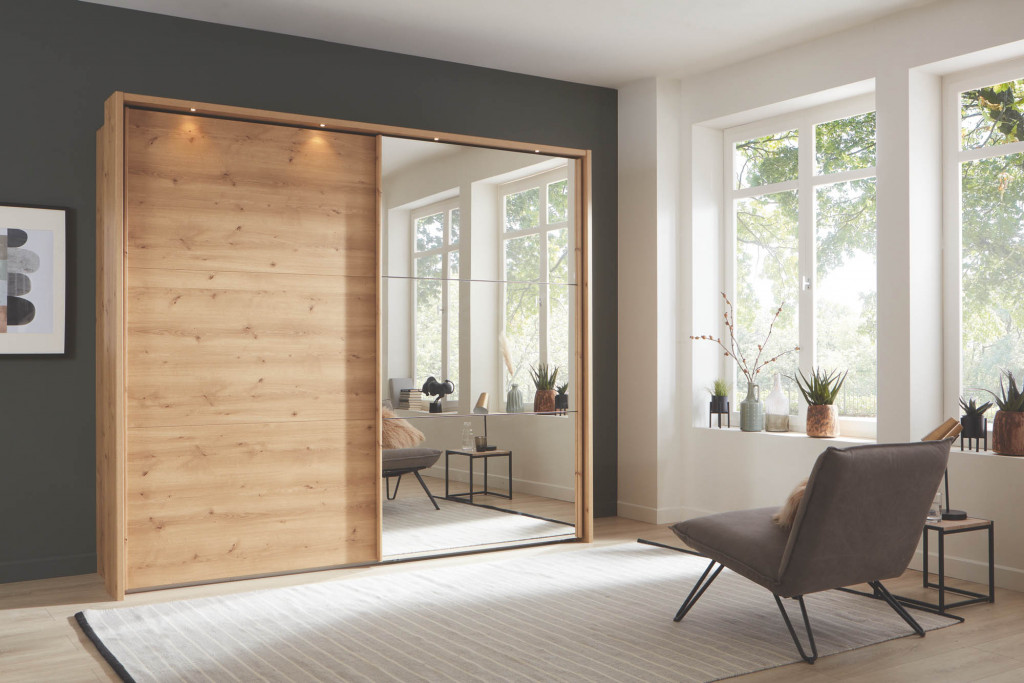 Unser hochwertiger Schwebetürenschrank mit zwei Türen vereint stilvolles Design und praktische Nutzung. Erhältlich in zwei Höhen und vier Breiten, passt sich dieser Schrank perfekt Ihren individuellen Raumverhältnissen an. Die Fronten sind in diversen Farben erhältlich und bieten Ihnen die Möglichkeit, den Schrank nach Ihrem Geschmack zu gestalten. Auch der Korpus kann in verschiedenen Farbtönen gewählt werden, um ein harmonisches Gesamtbild zu schaffen. Ein umfangreiches Beimöbelprogramm ergänzt das Angebot und ermöglicht eine perfekte Abstimmung Ihrer Einrichtung. Setzen Sie Akzente in Ihrem Schlafzimmer oder Ankleidezimmer und genießen Sie gleichzeitig großzügigen Stauraum sowie höchsten Komfort. Entdecken Sie die Vielfalt unserer Konfigurationsmöglichkeiten und gestalten Sie Ihren persönlichen Traum-Schwebetürenschrank!